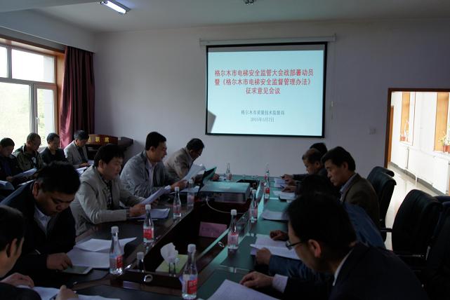 為扎實(shí)有效開展電梯安全隱患和風(fēng)險(xiǎn)排查治理,防范事故和故障發(fā)生,根據(jù)國家質(zhì)檢總局和省質(zhì)監(jiān)局電梯安全監(jiān)管大會(huì)戰(zhàn)的安排部署,2015年5月7日,格爾木市質(zhì)監(jiān)局組織召開了該市電梯安全監(jiān)管大會(huì)戰(zhàn)部署動(dòng)員會(huì),格爾木市質(zhì)監(jiān)局和安監(jiān)局領(lǐng)導(dǎo)出席了會(huì)議,來自12家電梯維護(hù)保養(yǎng)單位和電梯使用單的主管負(fù)責(zé)30余人參加了會(huì)議。